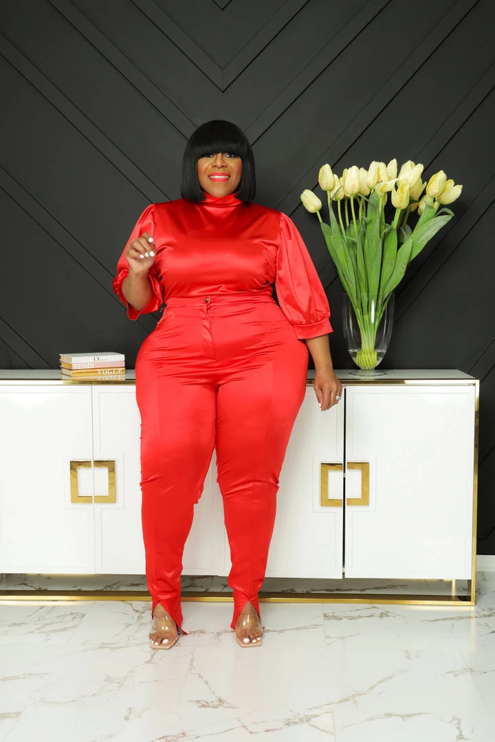 Curvaceous Boutique Red Hallie Slit Set