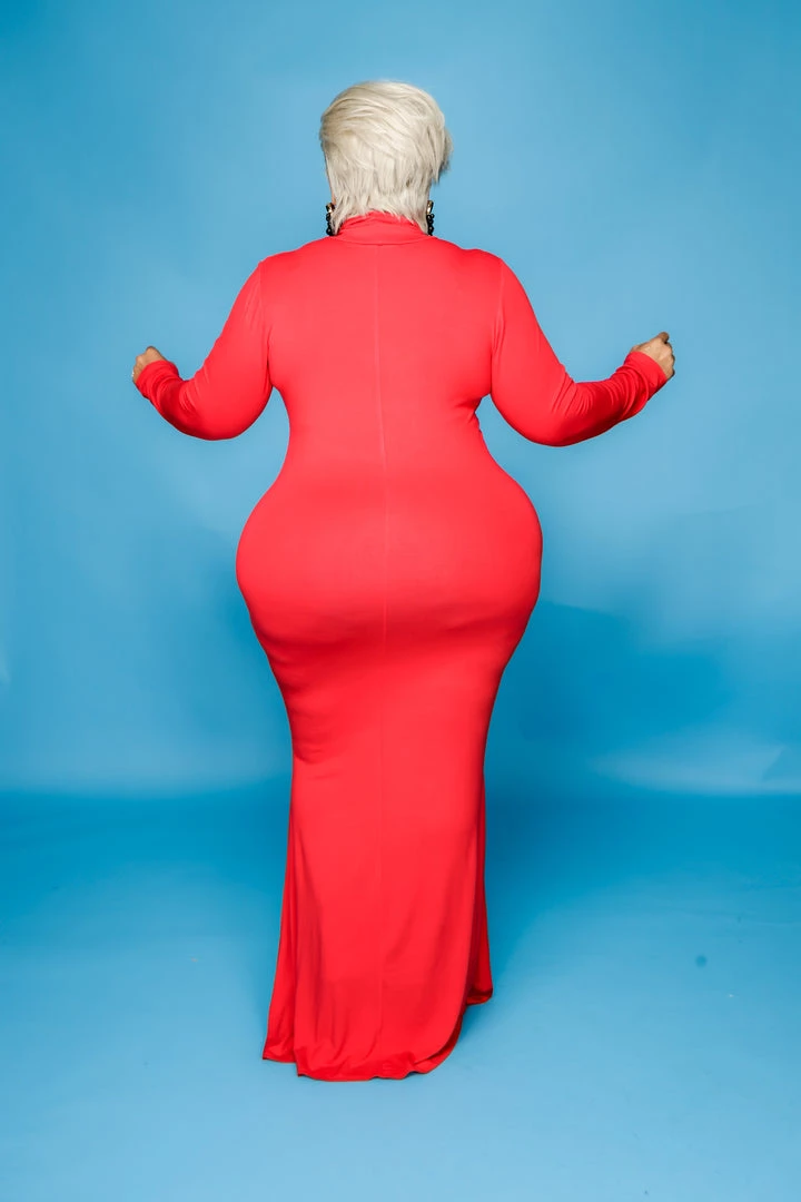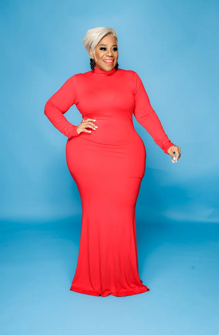 Curvaceous Boutique Red Lala Turtleneck Maxi Dress