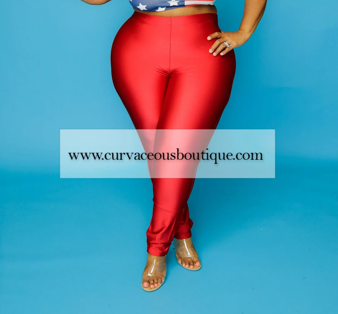 Curvaceous Boutique Red Shiny Liquid Leggings NEW