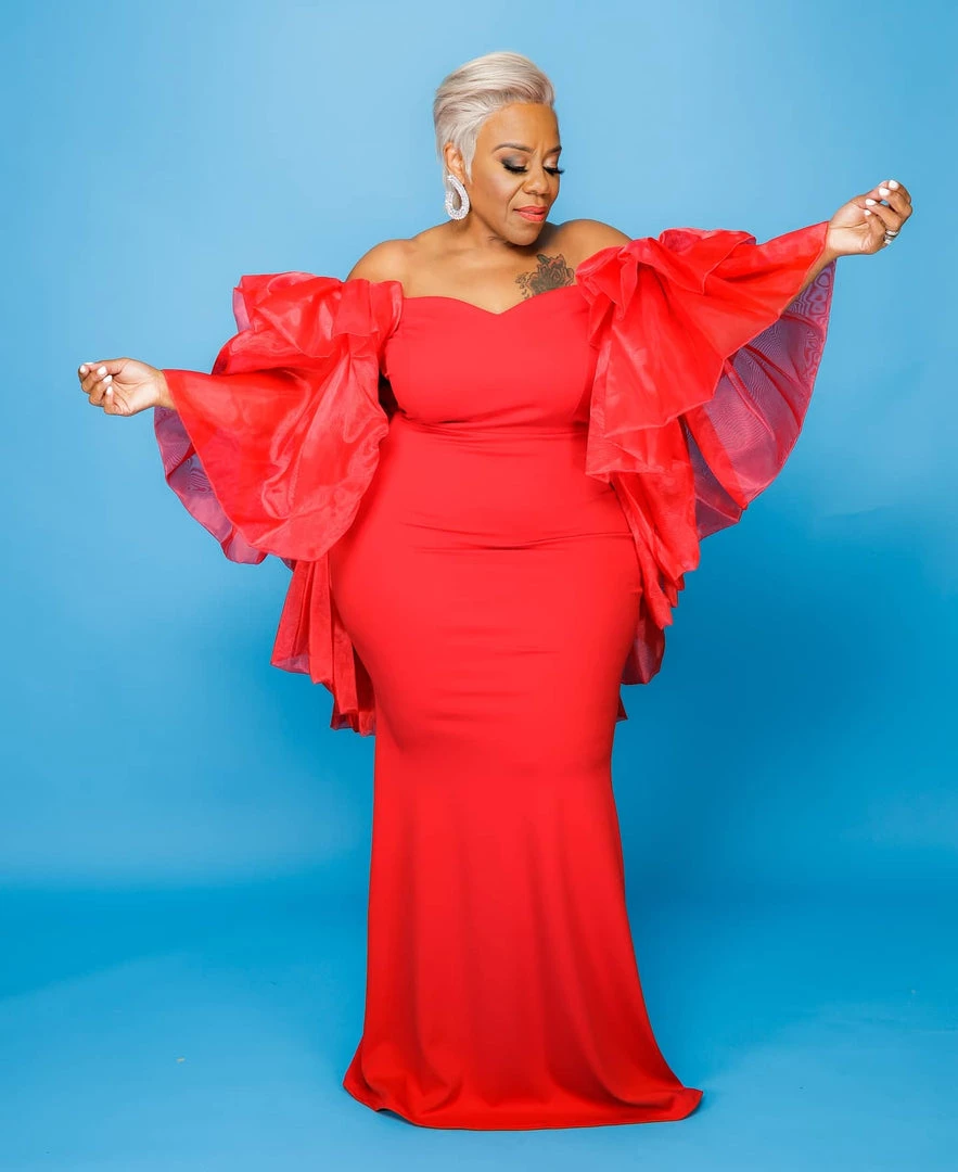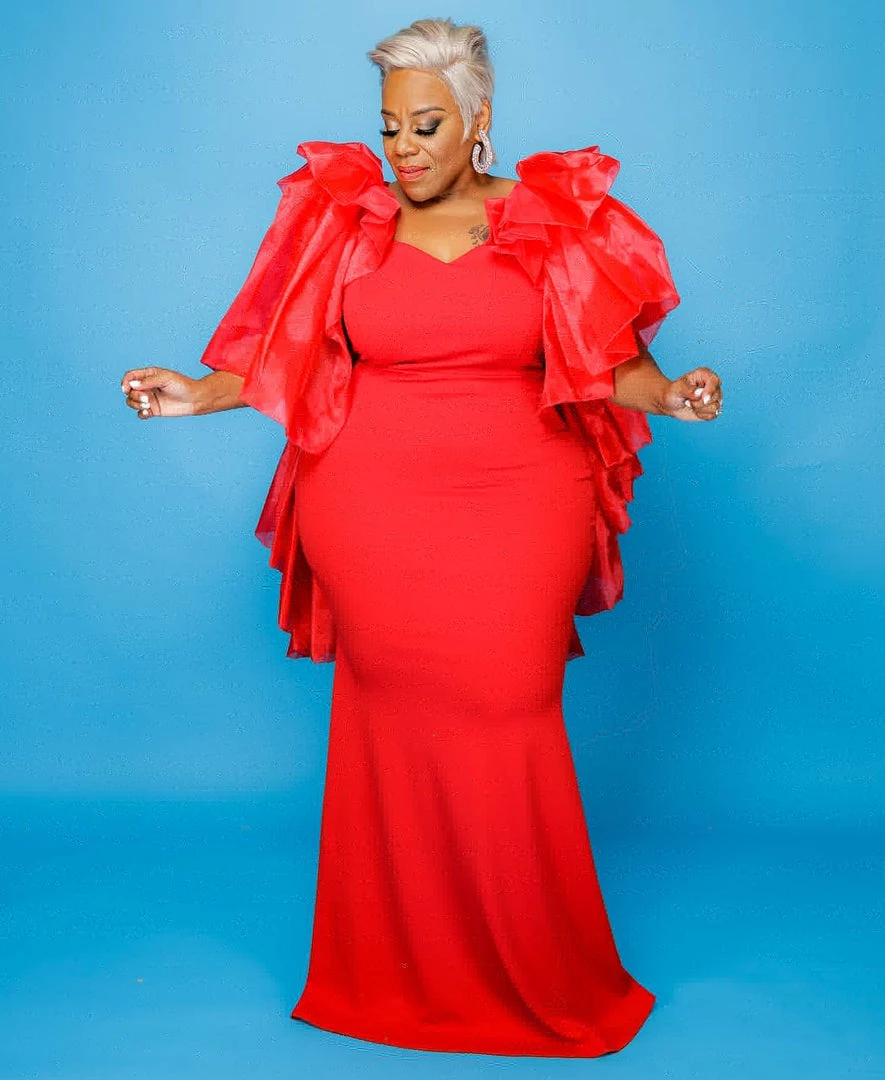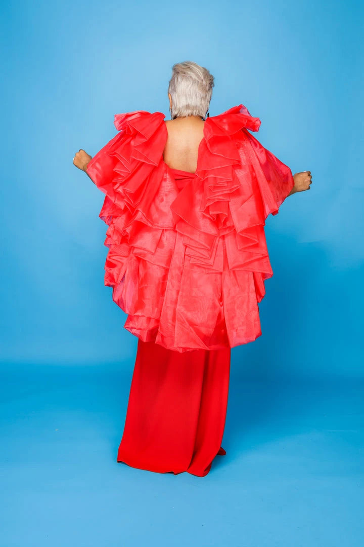 Curvaceous Boutique Red Whitney Chiffon Draped Gown