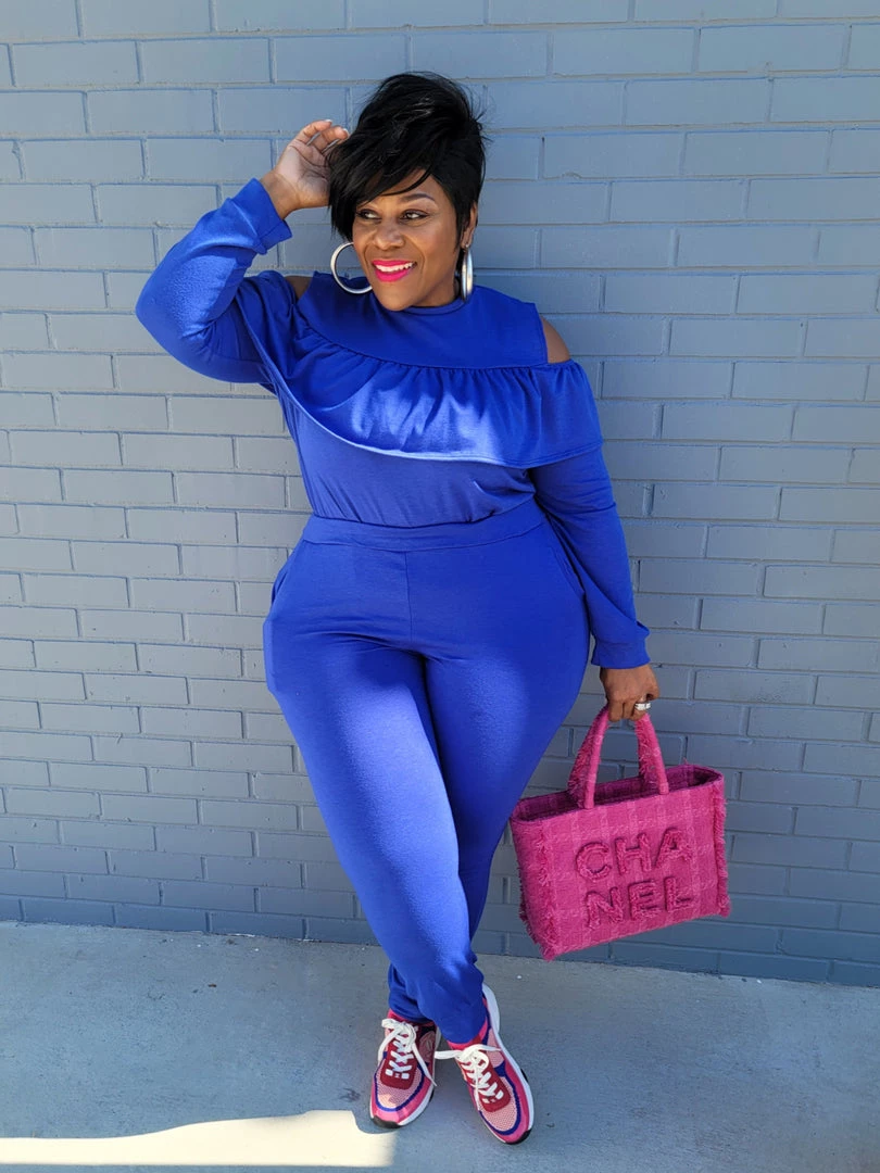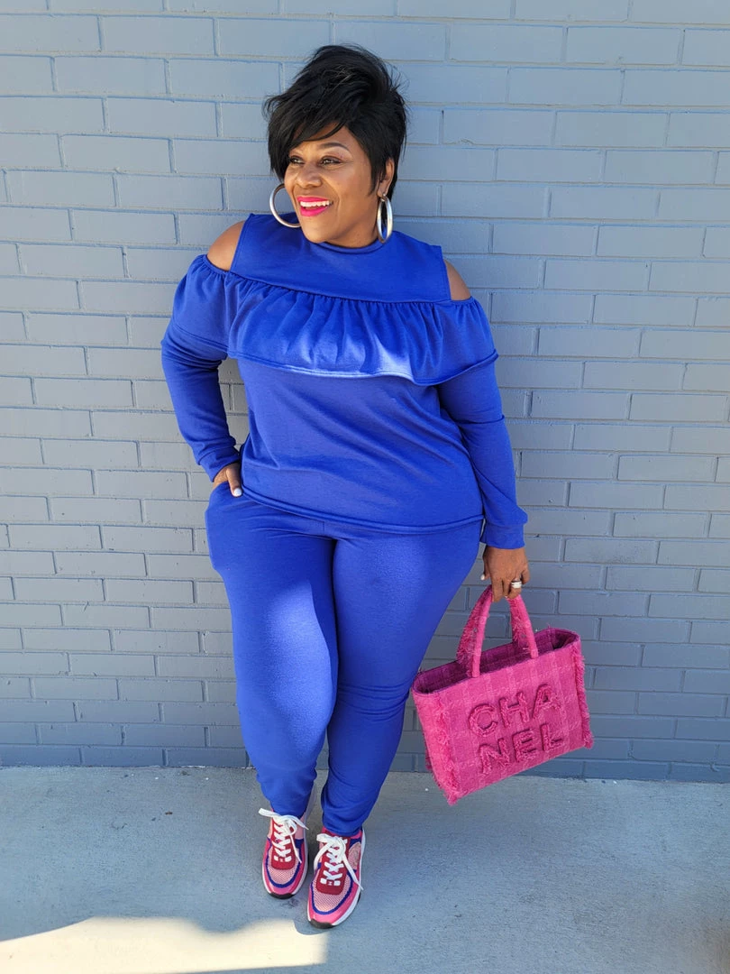 Curvaceous Boutique Royal Blue Candice Ruffle Set SALE