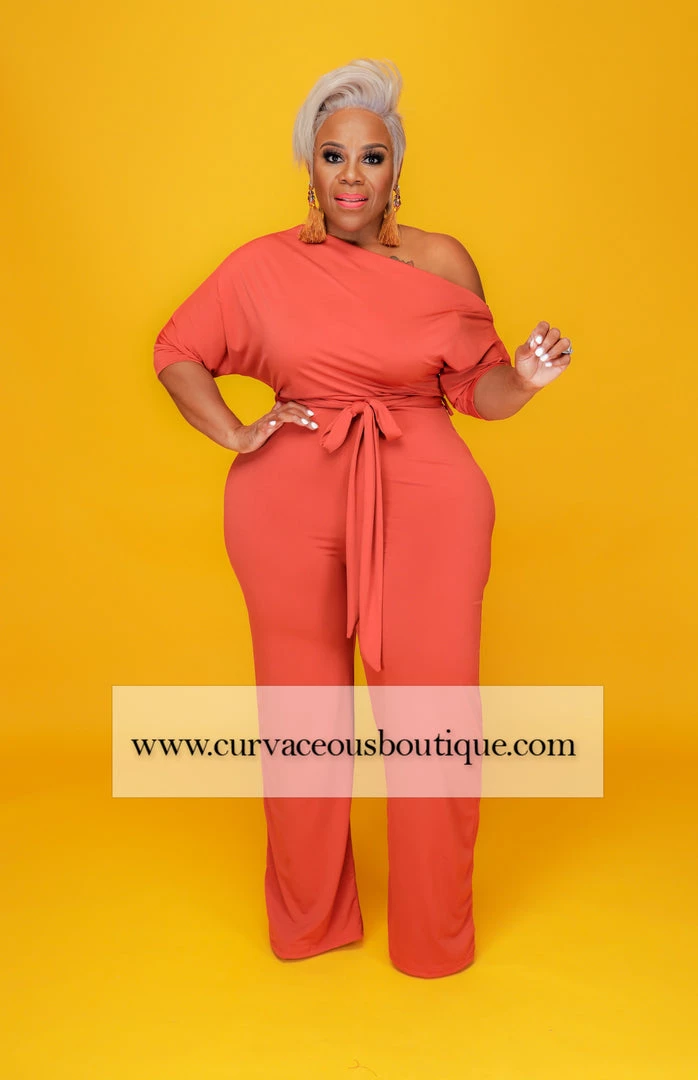 Curvaceous Boutique Rust Dolly Off Shoulder Jumpsuit