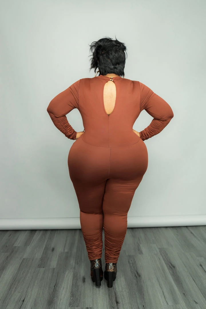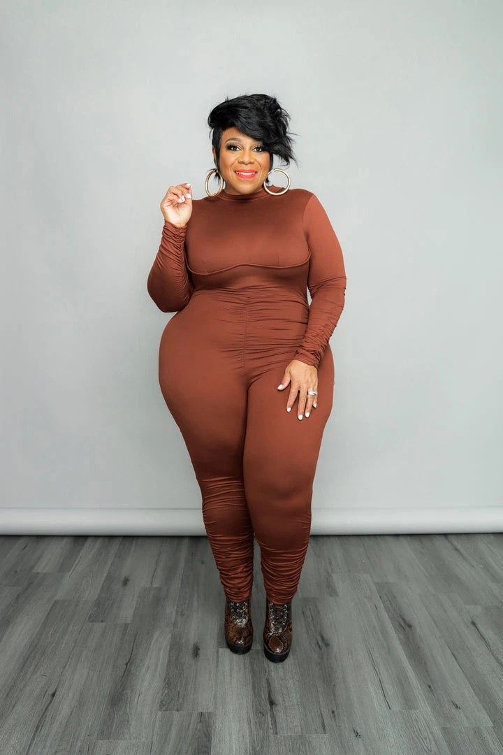 Curvaceous Boutique SALE Brown Ruched Catsuit