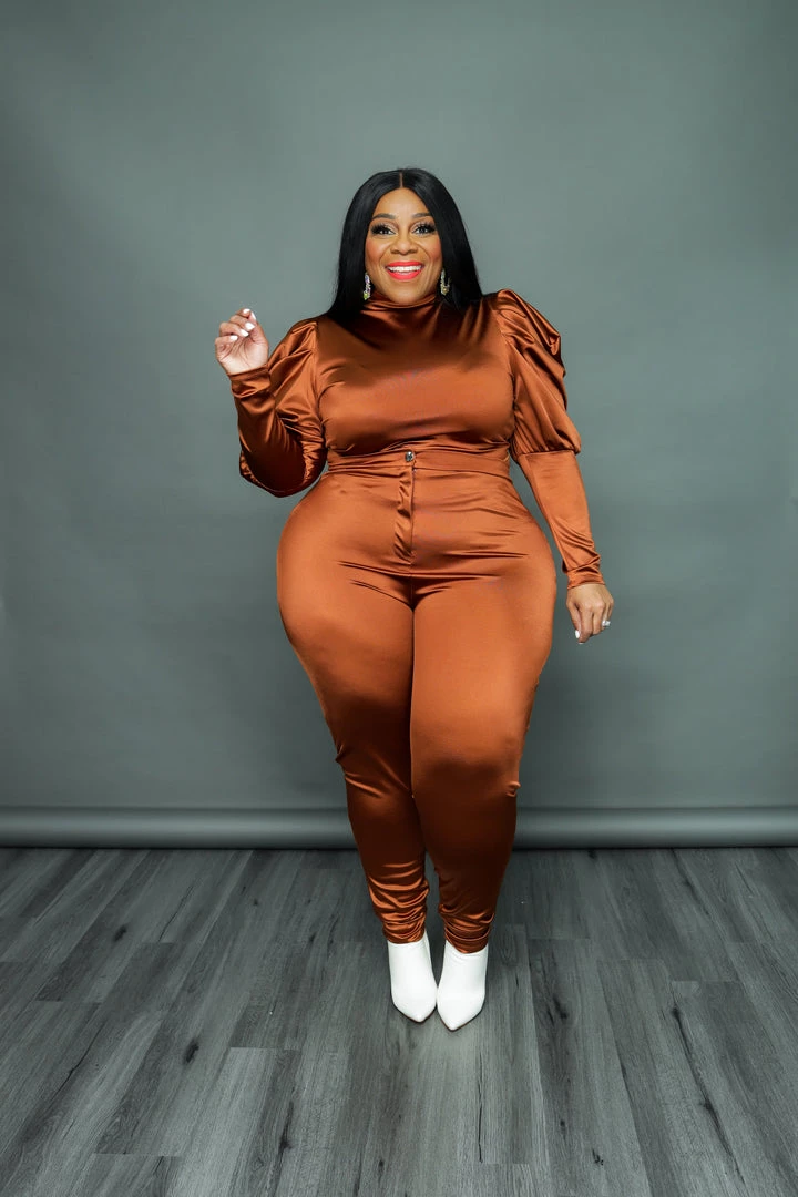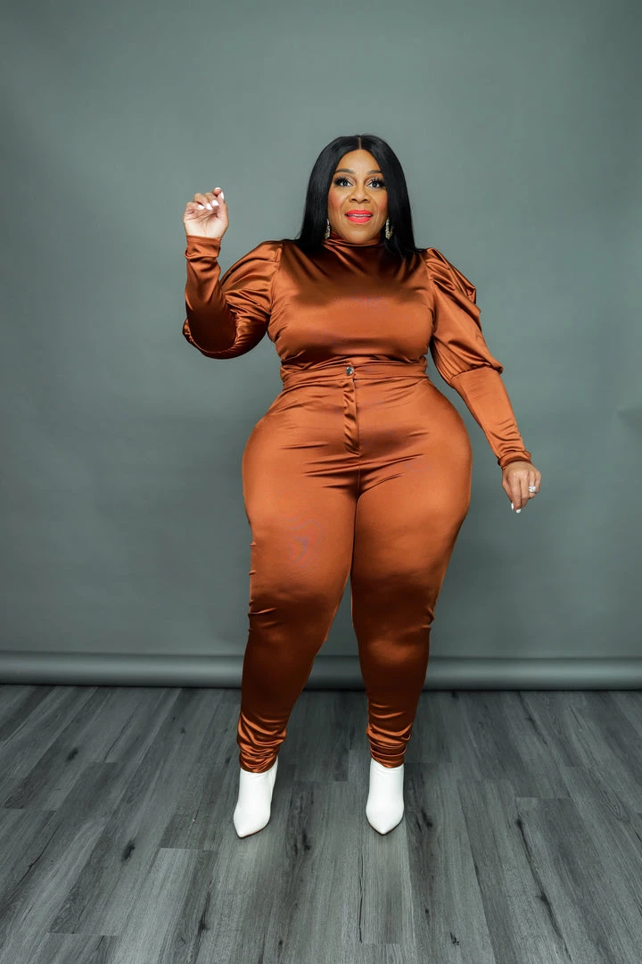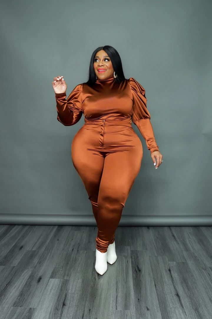 Curvaceous Boutique SALE Mocha Karon Draped Sleeve Set