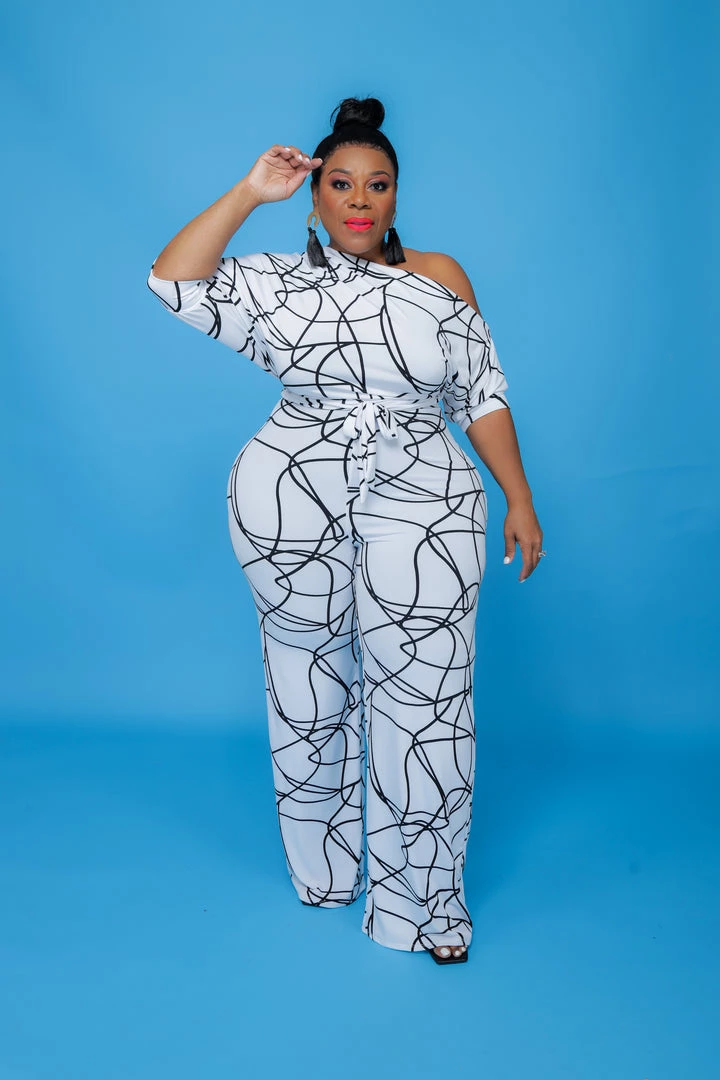 Curvaceous Boutique Scribble Dolly Off Shoulder Jumpsuit JUMPSUITS