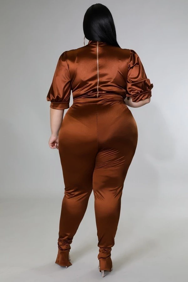 Curvaceous Boutique SETS Brown Hallie Slit Set