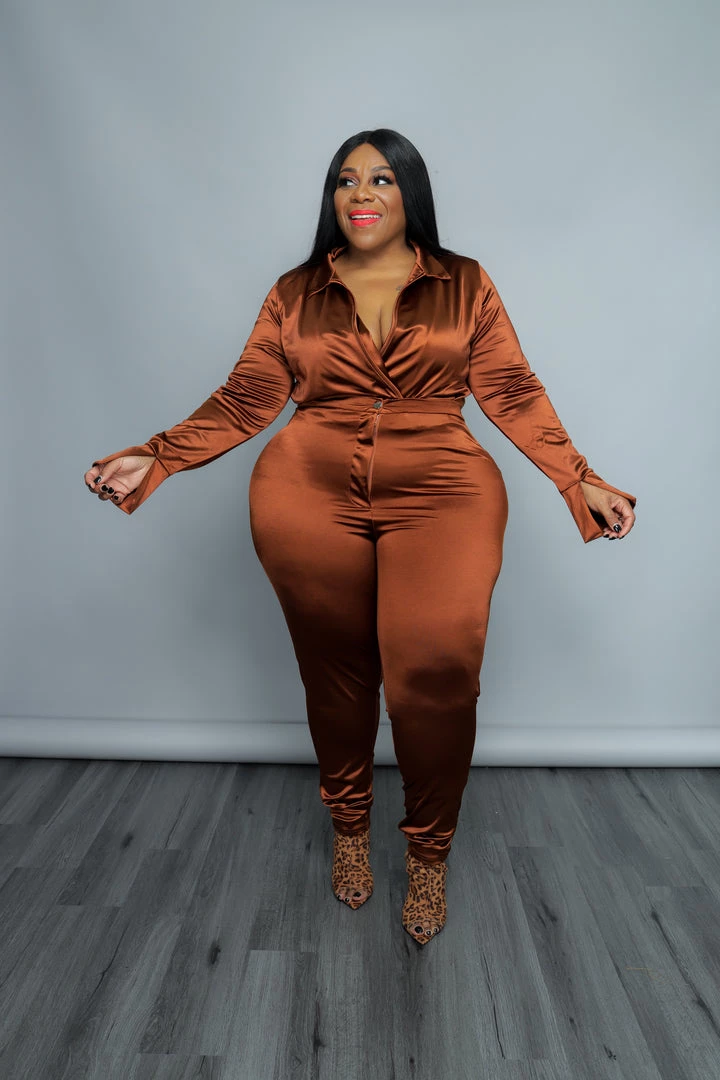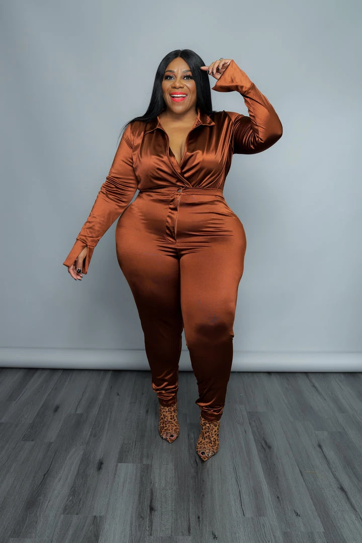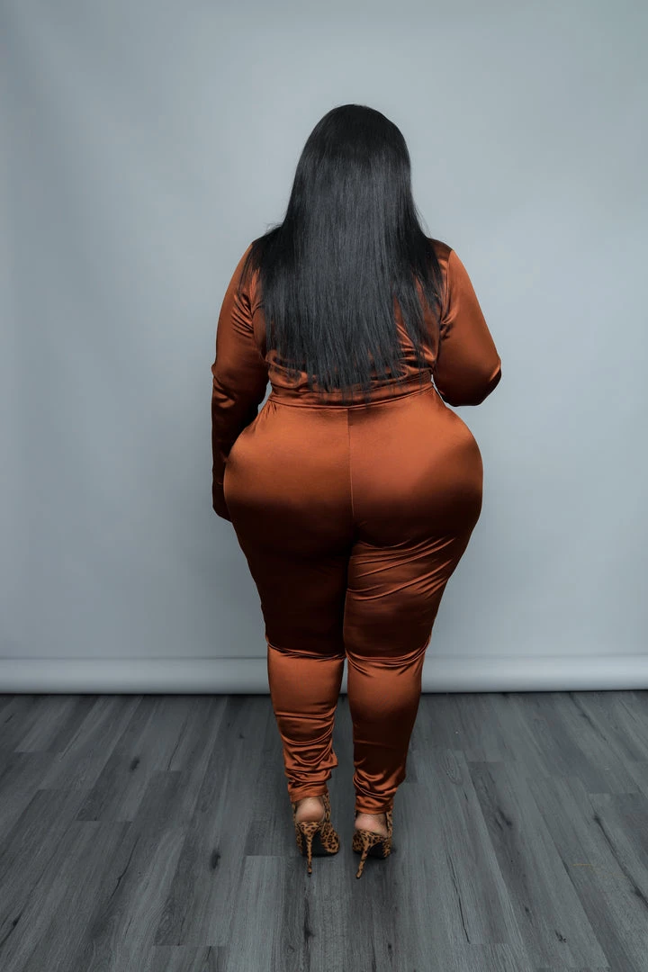 Curvaceous Boutique SETS COGNAC SATIN BODYSUIT SET