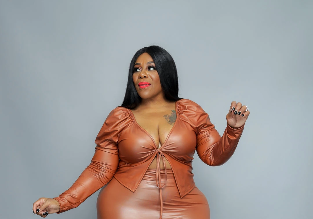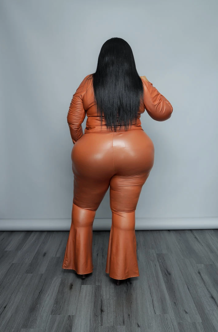 Curvaceous Boutique TOPS Camel Tie Faux Leather Top