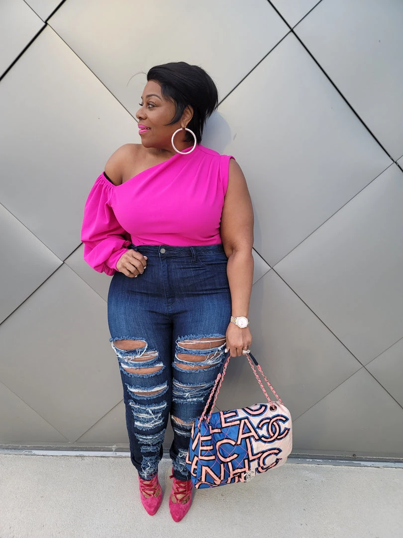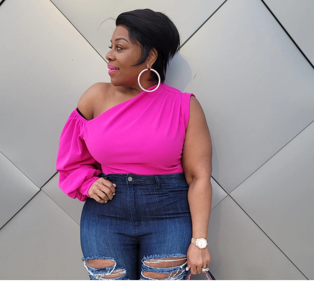 Curvaceous Boutique TOPS Pink One Sleeve Top