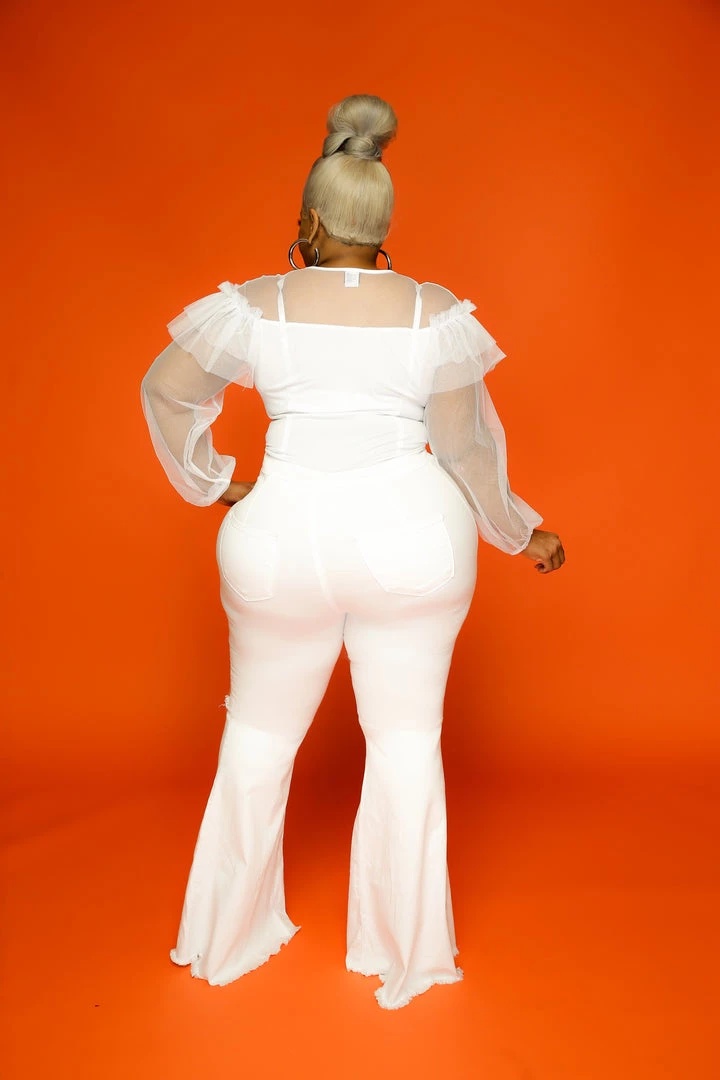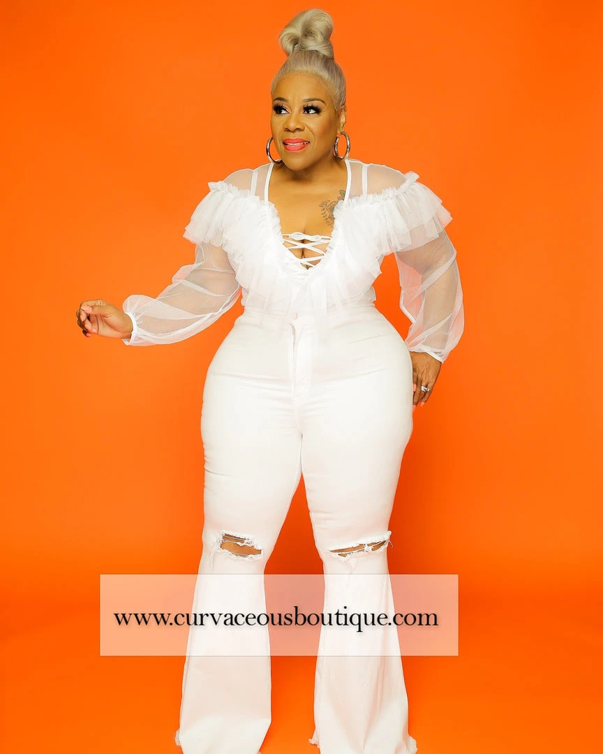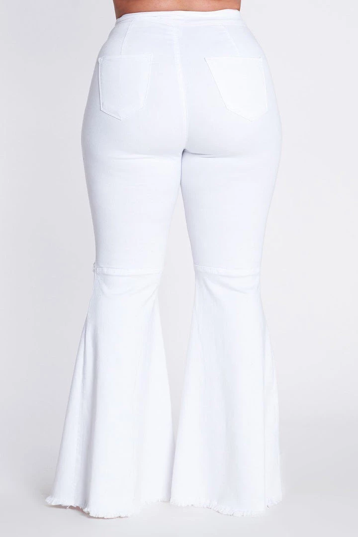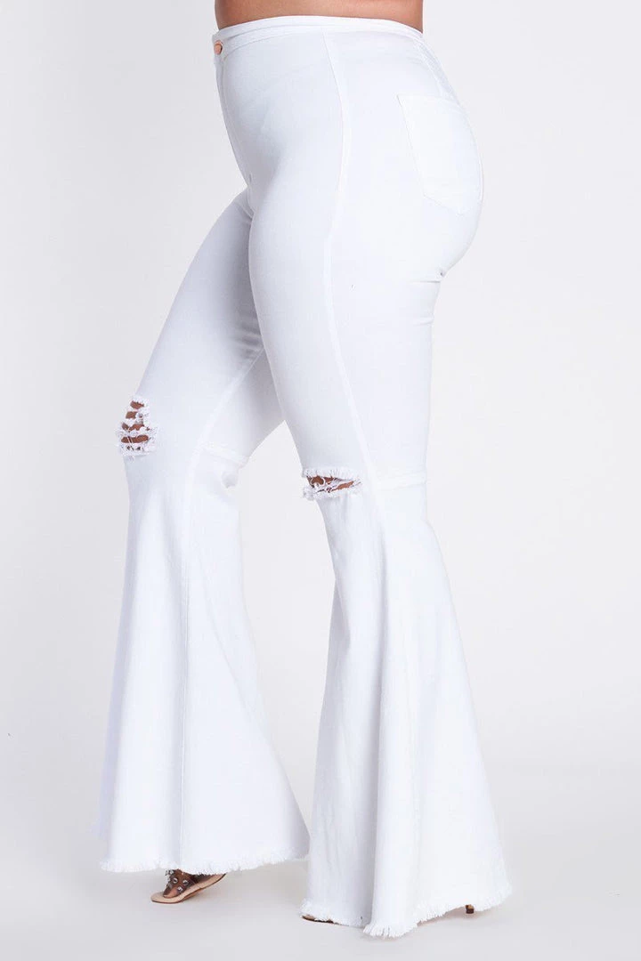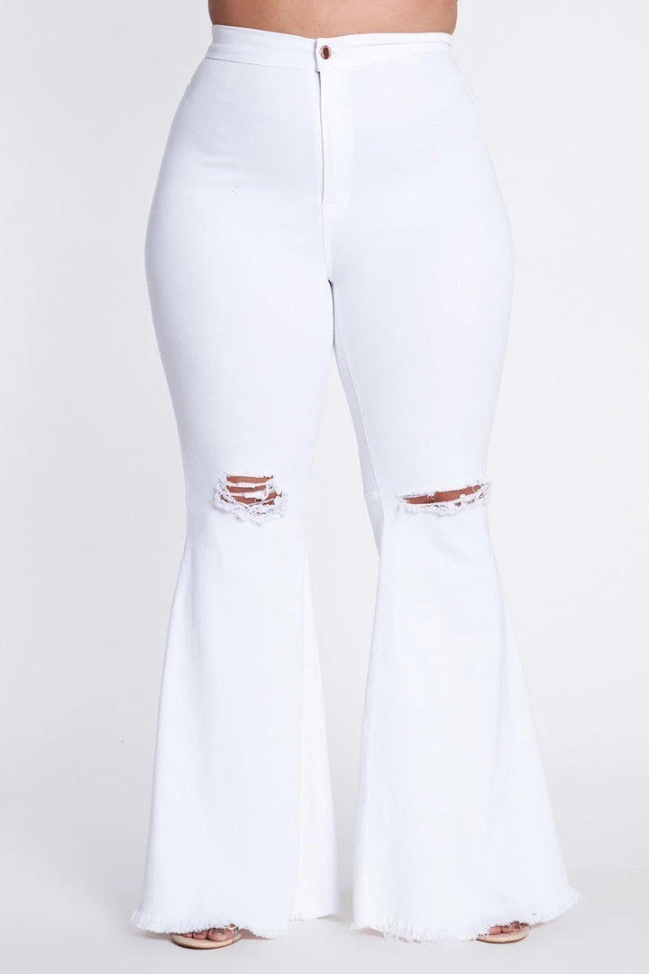 Curvaceous Boutique White Distressed Bell Bottom Jeans