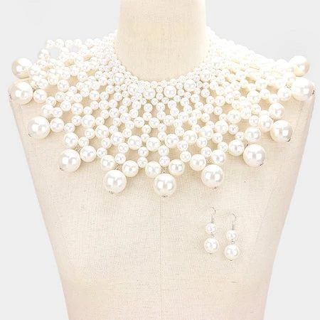 Curvaceous Boutique White Pearl Bib Choker Necklace ACCESSORIES