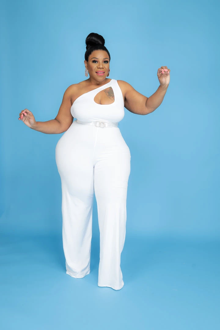 Curvaceous Boutique White Pretty Cut-Out Jumpsuit