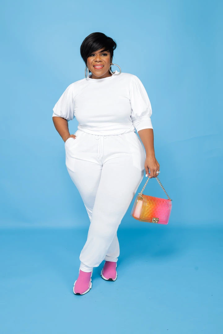 Curvaceous Boutique White Puff Me Jogger Set/ Review Covid-19 Policy
