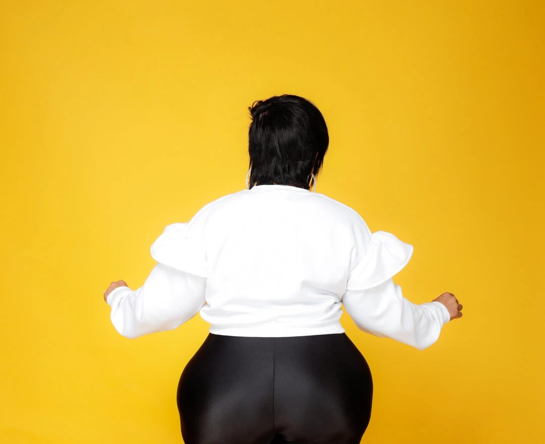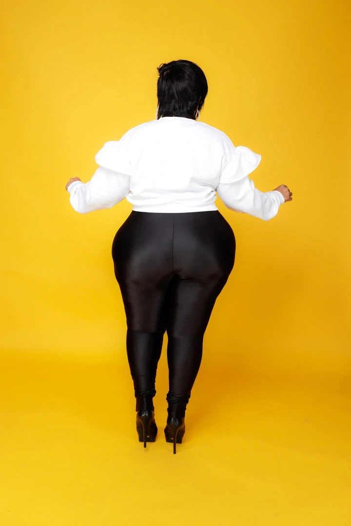 Curvaceous Boutique White Ruffle Heavy Duty Cutie Sweatshirt