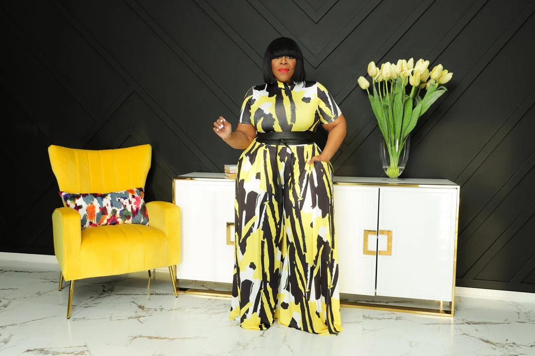 Curvaceous Boutique Yellow Geometric Palazzo Set
