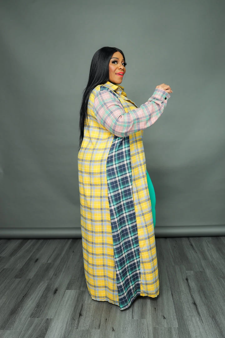Curvaceous Boutique Yellow Plaid Open Duster