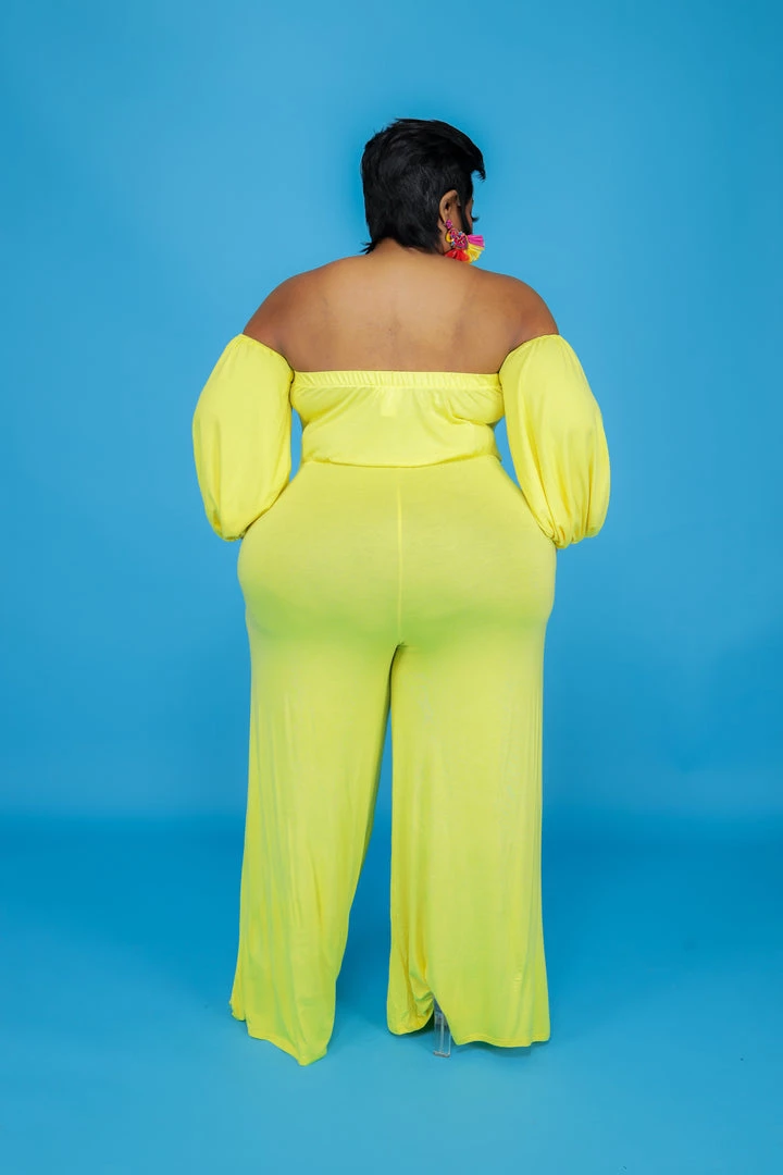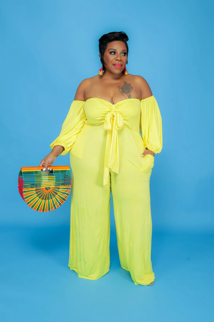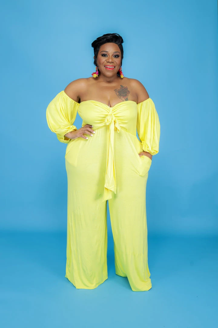 Curvaceous Boutique Yellow Tied Off Shoulder Jumpsuit SALE