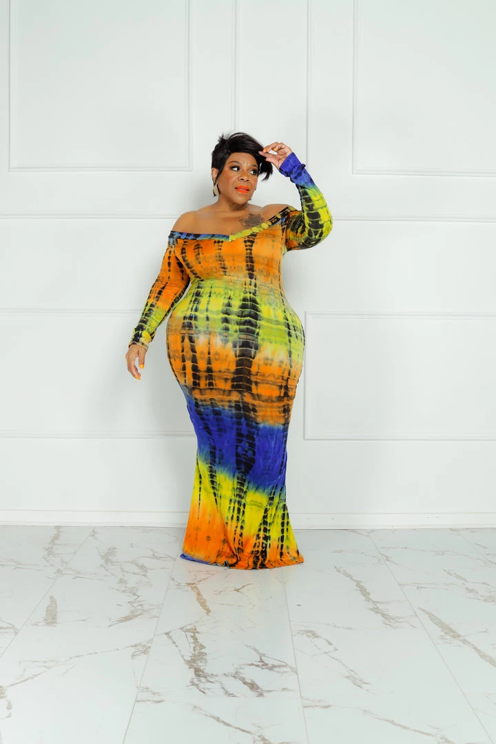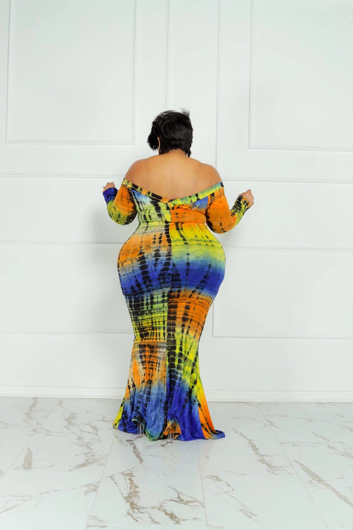 Curvaceous Boutique Yellow Totally Tie Dye Mermaid Dress NEW